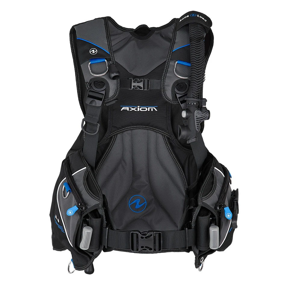 L’Axiom est un gilet très complet de type ADV enveloppant. Le système de harnais intégré Wrapture™ (breveté) vous permet en surface de tenir debout sans pour autant avoir la sensation que le bloc vous tire vers l’arrière.