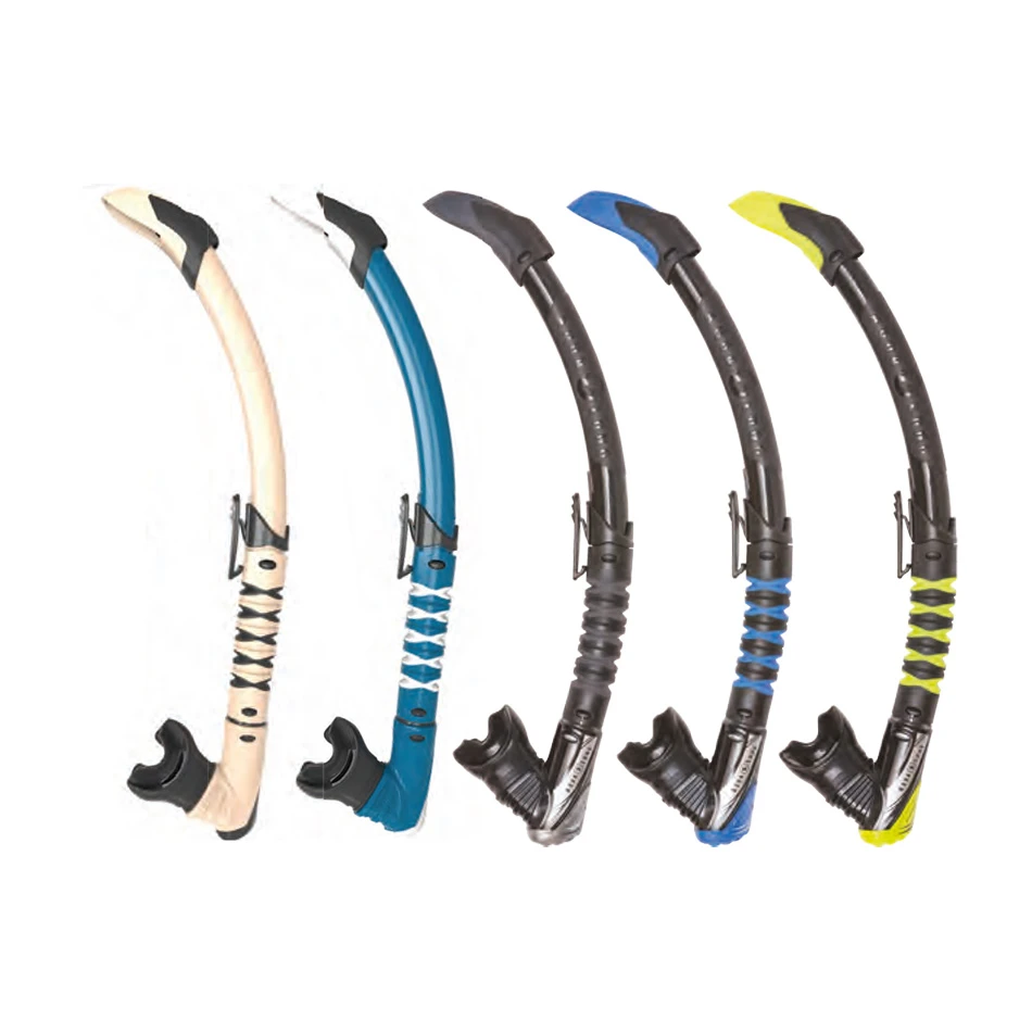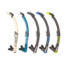 Son embout buccal anatomique en silicone réduit la fatigue maxillaire et son déflecteur d’éclaboussures supérieur souple limite les entrées d’eau en surface lorsque la mer est agitée.
