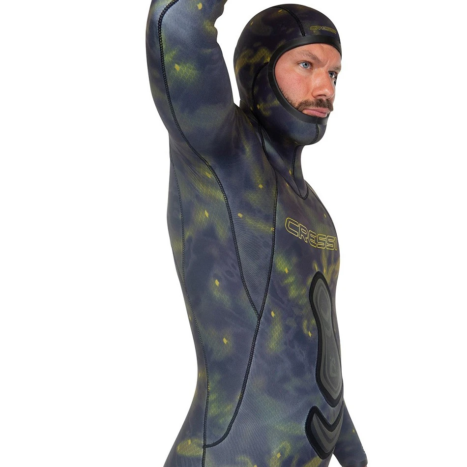 la nouvelle combinaison Cressi Lampuga mimétique utilise le système spécial d’impression numérique, qui permet d’obtenir des images à très haute résolution en créant donc un camouflage exclusif.