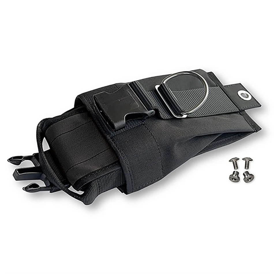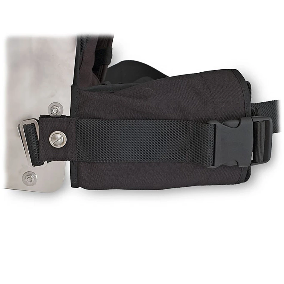 Le système de lestage constitué par 2 poches à plomb, qui sont glissées sur une sangle de ceinture et fixées à une plaque arrière (paire de boulons et d’écrous incluse)du harnis de plongée. La poche gauche est munie d’un anneau en D. À l’intérieur de chaque poche se trouve une pochette intérieure avec une poignée pour insérer les poids.