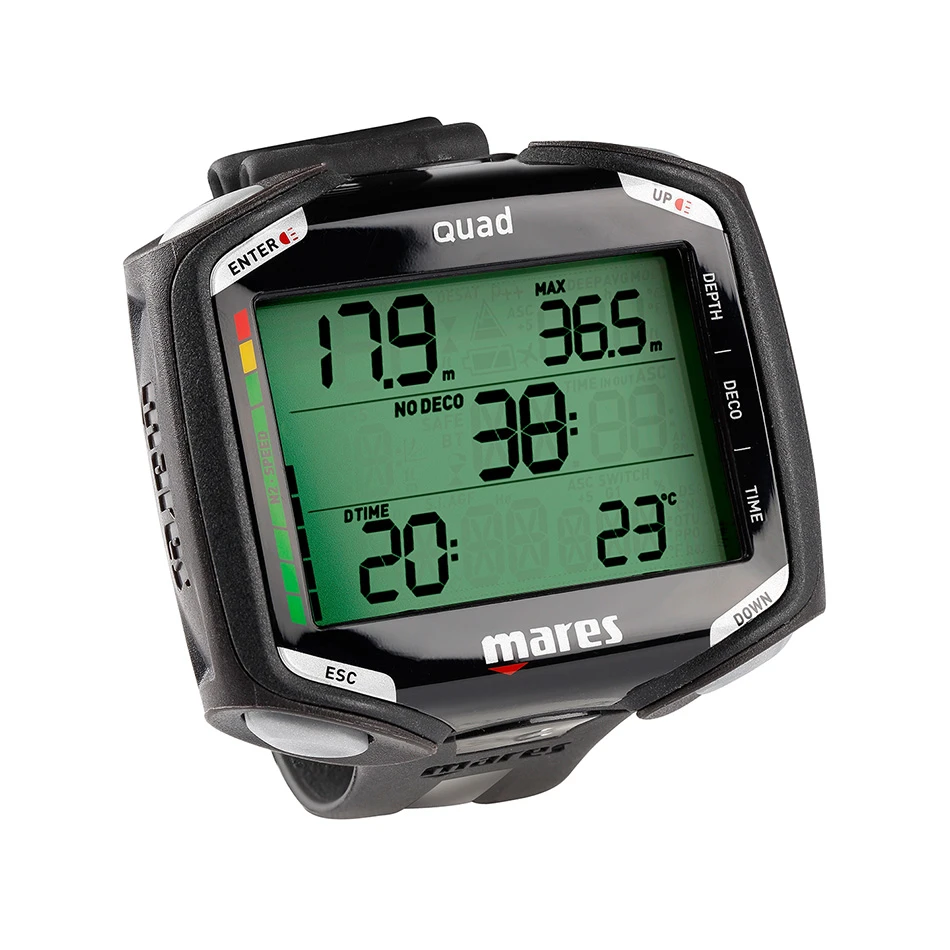 Ordinateur de plongée Mares Quad multi gaz, affichage extrêmement clair, une navigation naturelle et intuitive.